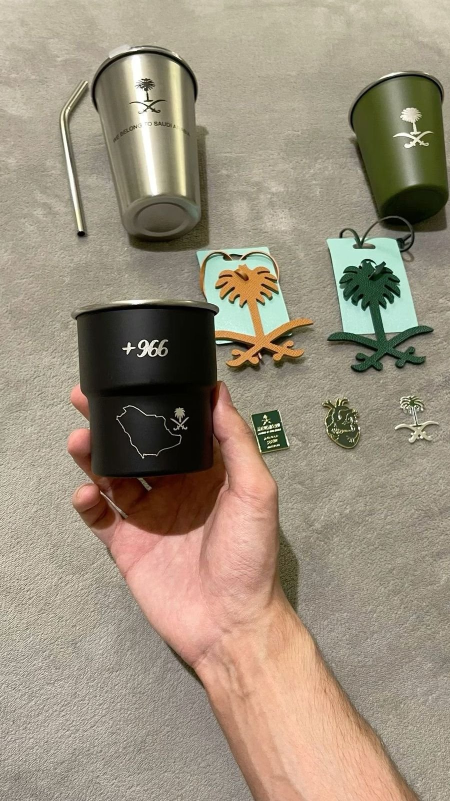 منتجات دعائية تحمل شعار الشركة مثل الأقلام والأكواب والدفاتر والهدايا التسويقية.